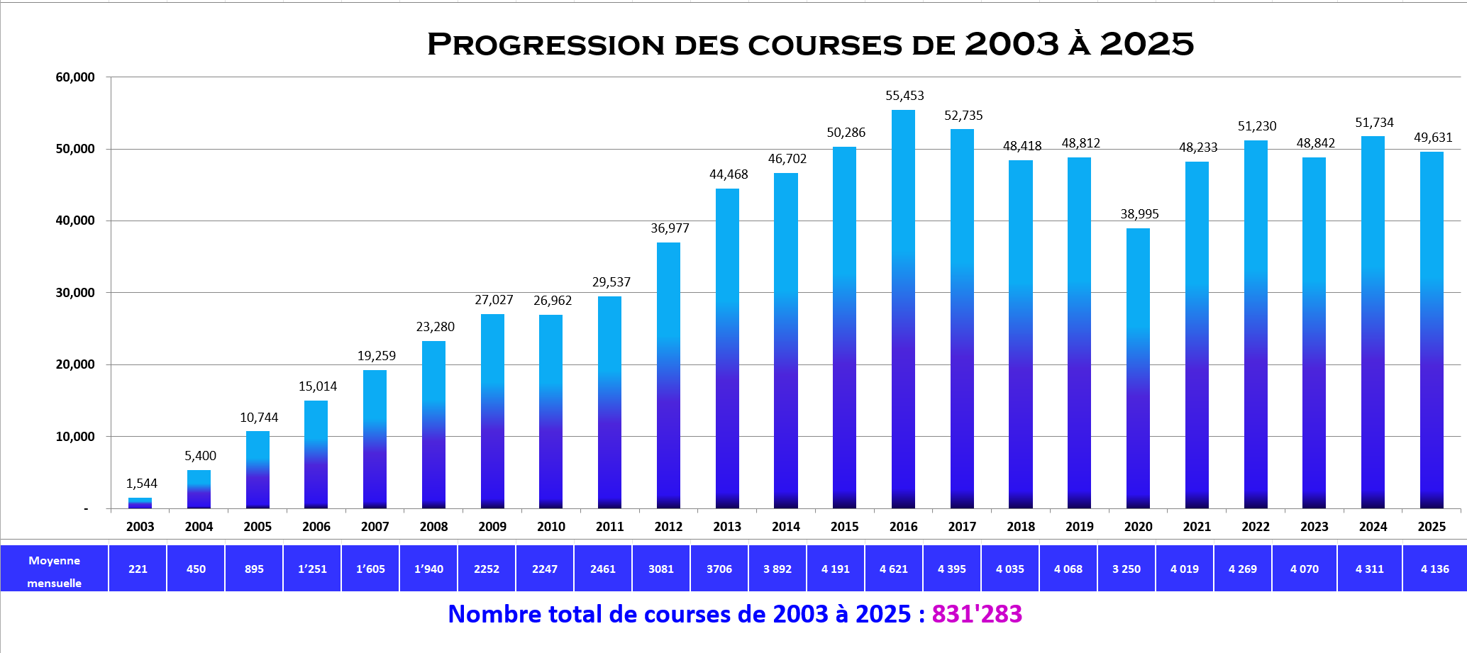 courses en moyenne par mois en 2025